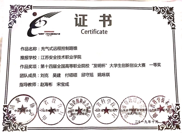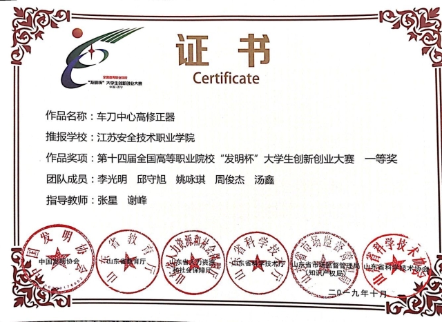 10月26日,第十四届高等职业院校发明杯大学生创新创业大赛终评决赛在山东理工职业学院落下帷幕,我院师生荣获两个一等奖,一个二等奖。由张星,谢峰老师指导的车刀中心高修正器作品获一等奖,由赵海彬,宋宝成指导的远程控制路锥作品获一等奖,由张星,高佳琪指导的两轮车辆紧急情况辅助器作品获二等奖。