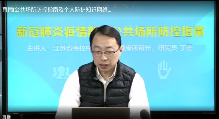 接到通知后,学院领导高度重视,立刻部署,要求全校师生均要参加此次网络培训活动,增强对公共场所防控以及个人防护知识的了解,从自身做起防控新型冠状病毒感染,切实为打赢这场战“疫”贡献自己的力量。此次直播由江苏省疾控中心环境与健康所所长、研究员丁震和江苏省疾控中心急性传染病防制所、副主任医师许可为大家详细讲解。