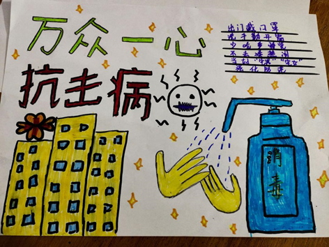 有未能到达一线参与志愿服务的学生,通过视频,手抄报等形式表达了对疫情的关怀。