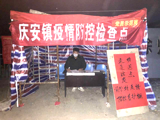 16高职中德班王杰同学自愿加入徐州市睢宁县庆安镇疫情防控检查点,按照当地政府要求值班,检查出入人员的体温。王杰同学在班里担任学习委员,是班里的学习标兵,多次获得奖学金,深受老师和学生的喜爱。