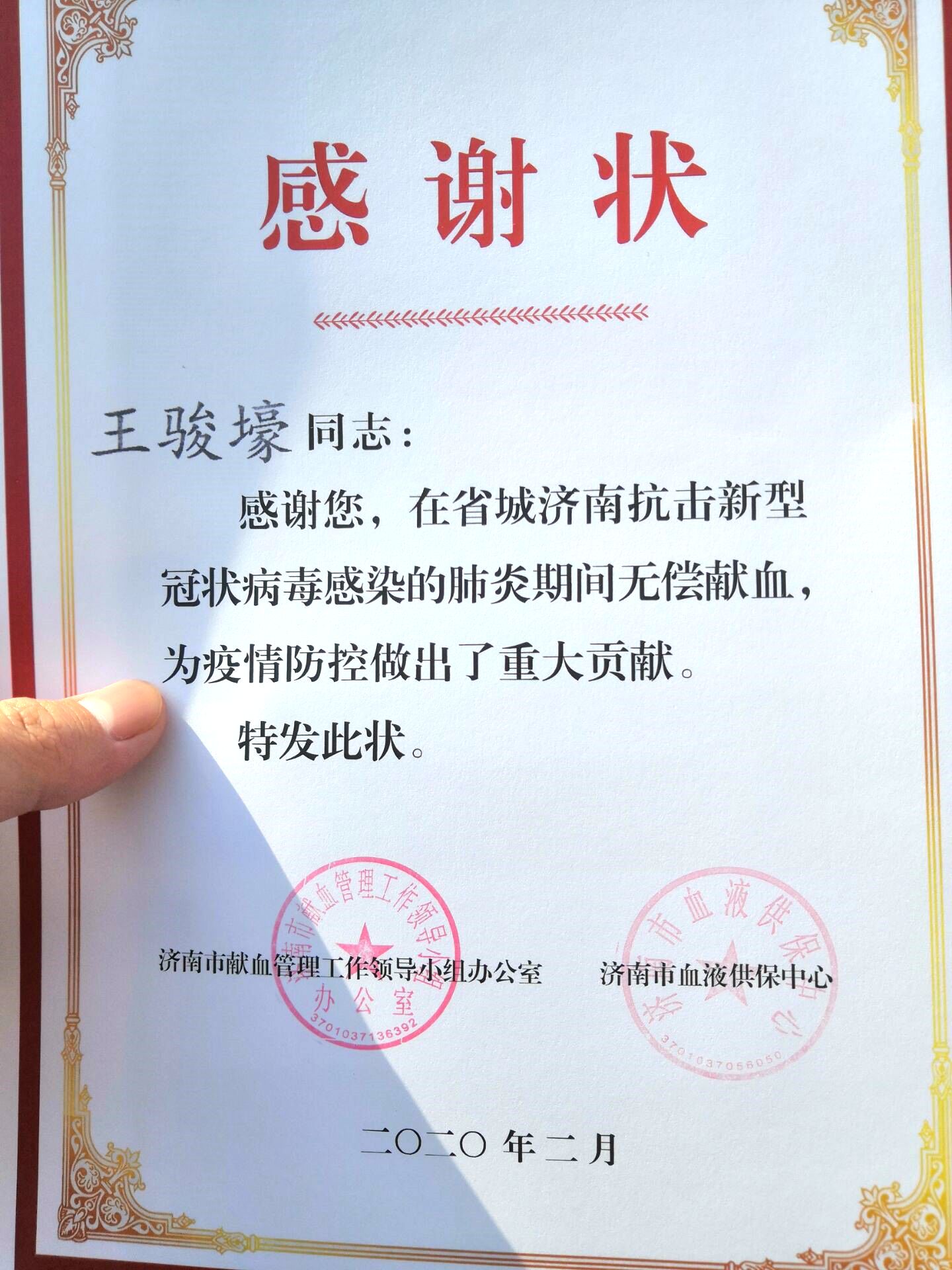 18电梯工程技术1班的王骏壕,积极响应政府号召,作为第一批志愿者加入家乡济南的抗“疫”工作。工作期间,王骏壕服从组织指挥,工作认真负责,完成个人工作任务后,还主动帮助其他同事,受到“战友”的好评和群众的称赞。得到他们的鼓励,王骏壕心里暖暖的,身上又有了使不完的劲儿。得知济南血库因疫情告急,王骏壕不顾家人的劝阻第一个报名,在他的带动下,许多志愿者和社区群众也加入到献血的行列。“功成不必在我,功成必定有我”,王骏壕说,“我志愿为家乡抗‘疫’工作贡献我的全部力量!”