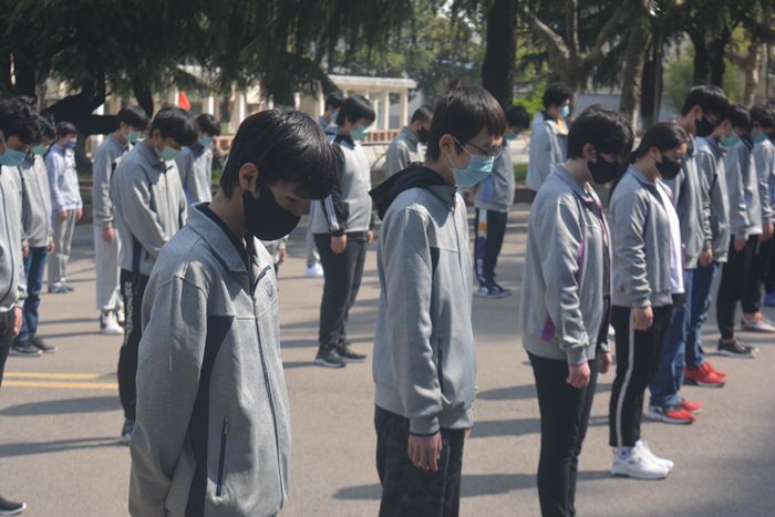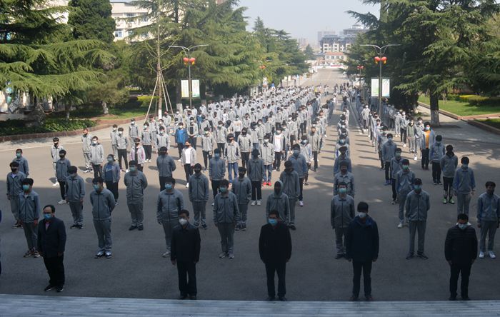 10时整,默哀防空警报鸣响,各位领导和师生共同向新冠肺炎疫情牺牲烈士和逝世同胞默哀三分钟。三分钟,共180秒,哀思充满每个人的心间,默哀警报响彻全校园。