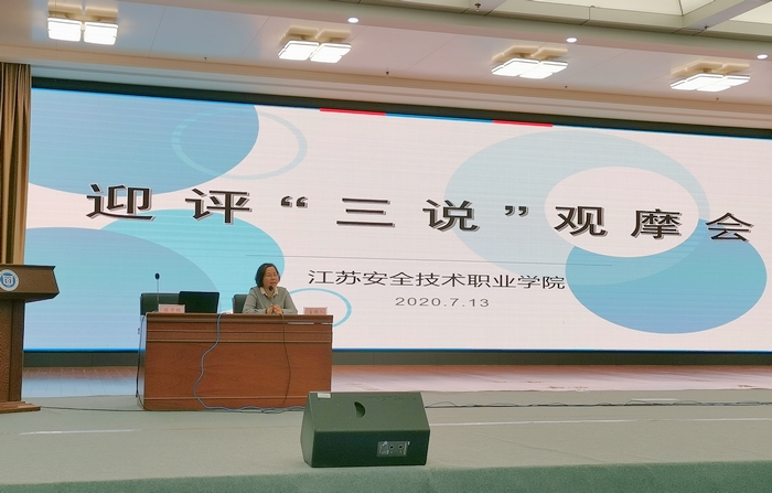 7月13日上午,学院召开迎评“三说”观摩会,会议由教学副院长李桂萍主持。全体教师及教学管理人员分别在云龙校区主会场和贾汪校区分会场参加观摩。