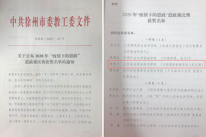 为贯彻落实徐州市教工委“疫情下的思政”教学比赛通知要求,我校积极参与比赛,喜获徐州市“疫情下的思政课”一等奖。