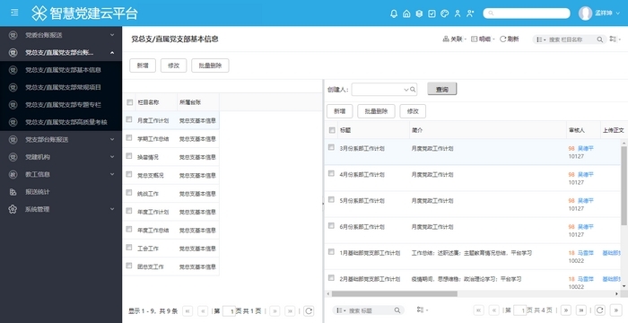 江苏安全技术职业学院党建云平台是立足于“大数据、云服务、影响力”,主动适应信息化的机遇和挑战,自主研发的。通过运用互联网、大数据等技术手段实现党建工作的数字化、信息化、智能化,为基层各级党组织在网上搭建党建台账管理平台、信息平台、数据统计平台、典型经验交流窗口、基层党组织服务平台、党建考核平台,从而更好地推动基层党建工作创新发展。结合学院实际,江苏安全技术职业学院党建云平台开设了基本信息、常规项目、专题专栏和高质量考核四大版块。通过党建云平台,各级党组织可以实现终端日常的系统运行、活动管理、信息维护等工作,可以开展网上学习交流、党务知识学习。构建起学院党建纵向到底、横向到边的矩阵式全覆盖信息化管理体系,夯实了各基层党组织党建工作主体责任和党组织书记第一责任,搭建起各级党组织和全体党员展示成绩、交流经验的广阔平台,打好了党建工作信息化考核的基础,推进学院党建体系标准化、管理信息化、载体品牌化、服务人性化目标建设。