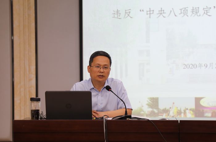 纪委书记成伯君结合详实的案例,对违规公款吃喝、违规收送礼金礼品、违规操办婚丧喜庆事宜等十四类违反中央八项规定精神的典型问题进行了深入解析,再次释放出执纪必严、违纪必究的强烈信号,为全体党员干部又一次敲响警钟。他强调,要从强化“四个意识”、做到“两个维护”的高度,切实增强落实中央八项规定精神的政治自觉、思想自觉和行动自觉。他要求,中秋、国庆即将来临,学院各级党组织要广泛开展谈心谈话、纪律教育和警示教育;各级领导、各职能部门要认真履行党风廉政建设责任,守好“主阵地”,种好“责任田”;学院纪委要进一步畅通拓宽举报反映渠道,开展明查暗访,强化日常监督。对节日期间发现的“四风”问题,以及落实疫情防控、安全生产责任和防止餐饮浪费等方面的问题,要从严查处、快办快结,通报曝光。
