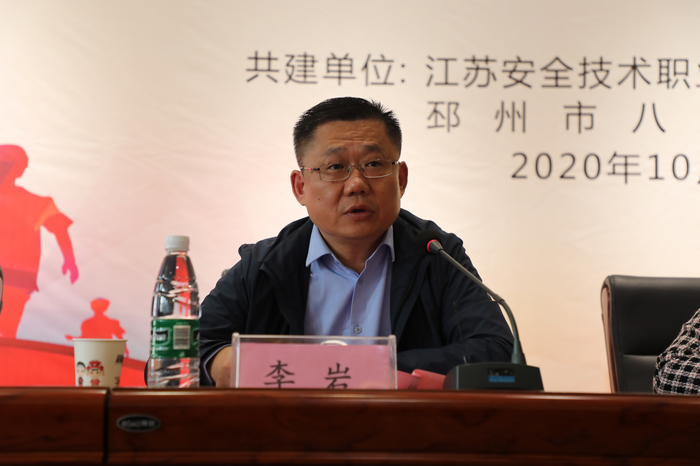 李岩在致辞中代表邳州市教育工委、市教育局向江苏安全技术职业学院马克思主义学院、邳州市八义集高级中学表示祝贺。他表示,本次合作是贯彻落实习近平总书记关于思政课建设重要论述的一项重要举措,是徐州市第一项城乡思政课共建、大学中学思政课共建工程,翻开了徐州市“思政课大中小一体化建设”新篇章,希望共建双方可以携起手来,同向同行,为党育人、为国育才。