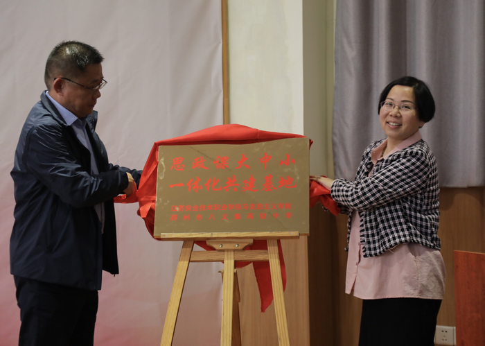 随后,李桂萍、李岩共同为“思政课大中小一体化共建基地”揭牌,江苏安全技术职业学院马克思主义学院副院长耿以侠为共建活动赠送《钟南山:苍生在上》、《悬崖村》、《社会主义核心价值观读本》等50本书籍。