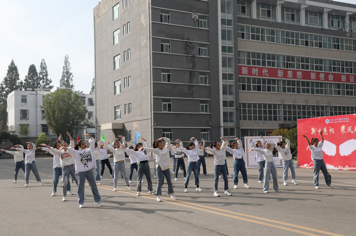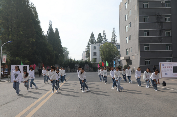 学院团委精心组织了“快闪”活动《红旗飘飘》、《你笑起来真好看》,参与演出的同学们的认真表演,让校园内青春的气息更加飞扬,吸引了入学新生们的驻足观看。