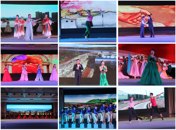 在深情的诗朗诵《乡愁》中,演出拉开了序幕。本场演出共分为四个篇章,在第一篇章“情怀”中,群舞《碇步桥水清悠悠》、女声独唱《彭城谣》、独舞《说兰花》为观众展示了家乡是每个人内心深处无法割舍的情怀。在第二篇章“力量”中,双人舞《回家》、男声二重唱《父子》、歌曲联唱《奋斗吧,中华儿女》从“小家”到“国家”为观众诉说了对家乡的热爱永远是推动个人和国家前行的力量。在第三篇章“传承”中,大学生舞蹈团带来的群舞《额尔古纳河》、张雨童带来的女声独唱《那山那水》,藏族同学带来的藏族风情歌舞《再唱山歌给党听》博得了观众阵阵的掌声和喝彩,藏族同学还为在场的领导老师献上了圣洁的哈达,将现场气氛推向了高潮。在第四篇章“未来”中,刘政老师和吴瑜老师带来了一个诉说对祖国热爱的男女二重唱《我怎样去爱你》,女声四重唱《春天的芭蕾》、群舞《脊梁》、独唱《领航新时代》、抒发了新时代中华儿女对美好生活的向往与热爱。