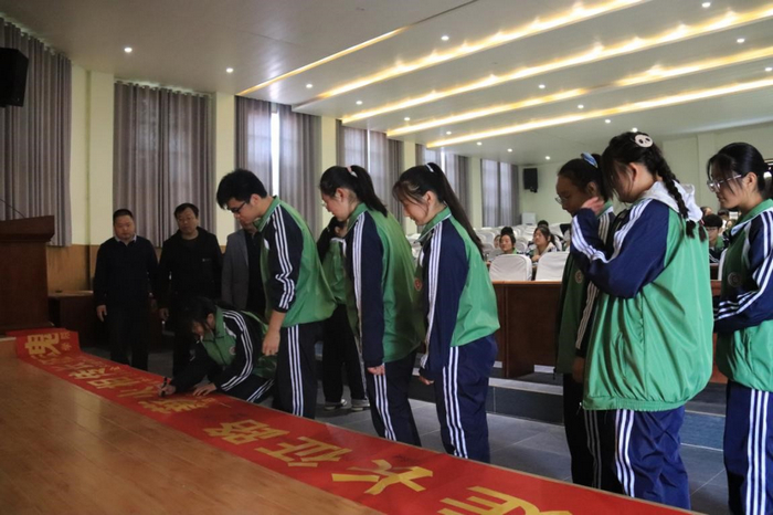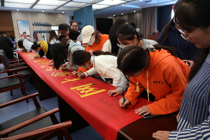 图5 我院学生 八义集高级中学学生在横幅上签字