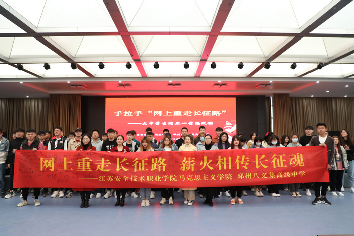 11月2日,江苏安全技术职业学院马克思主义学院和邳州市八义集高级中学举行“手拉手‘网上重走长征路’——大中学生同上一堂思政课”活动。本次教学活动内容由“忆·长征”、“重·长征”、“话·长征”、“颂·长征”、“信·长征”五部分组成。江苏安全技术职业学院和八义集高级中学的学生通过“腾讯会议”以网络连线的方式共同聆听了这堂精彩的思政大课。