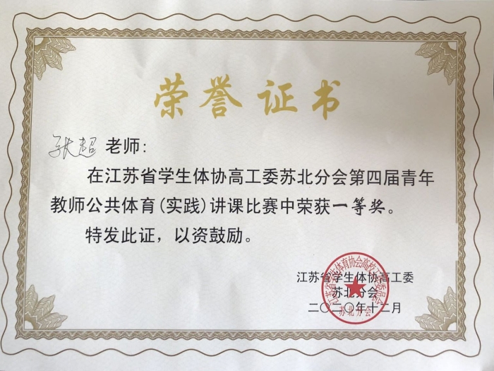 12月6日,由江苏省学生体育协会高校工作委员会举办的苏北高校第四届青年教师公共体育(实践)讲课比赛落下帷幕。基础课教学部张超老师代表我院参赛,荣获一等奖。