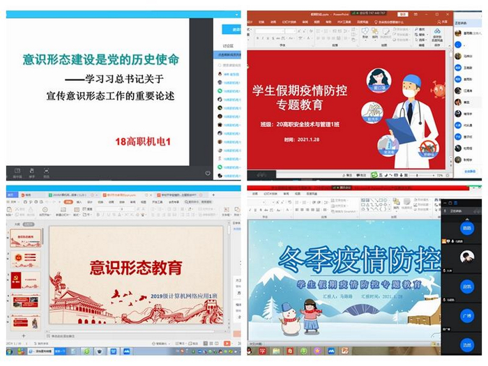 针对离校居家的学生做到网上教育不断线,辅导员、班主任充分利用线上平台发挥网络思政的作用,开展学“四史”线上学习教育活动,弘扬抗疫精神和爱国精神,要求学生按时上报体温和行程轨迹,做到不信谣、不传谣、不造谣。