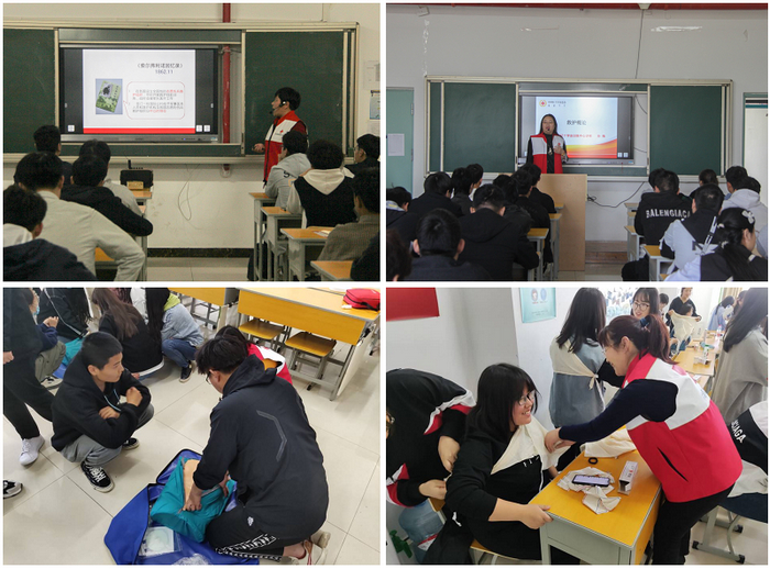 为期两天的培训共有三个环节,分别为理论教学、实践操作和现场考证。培训人员现场讲解了应急救护基本知识、心肺复苏术、海姆立克急救法、应急包扎方法、AED(自动体外除颤仪)使用方法。在讲解心肺复苏急救技能的过程中,宣讲人员在台上完整地演示了急救步骤,并邀请同学上台练习,对同学们急救动作上的错误进行纠正。在海姆立克急救法培训过程中,宣讲人员从噎食的危险因素评估、临床表现、海姆立克急救法的原理等相关知识进行了细致的讲解,并与学生配合现场模拟演示了各种噎食患者的现场救治。本次培训在理论讲解的过程中还穿插了应急包扎练习环节,宣讲人员现场给同学们分发了三角巾和绷带,让同学们亲自体验救护工具的使用,以便更好地掌握急救技能。我院参训师生在实际操作训练后,全部通过了理论考试和技能考核。