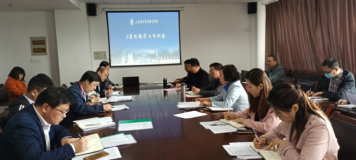 4日30日,学院五月份教学例会在云龙校区1015会议室召开,院长徐建春、副院长李桂萍,全体二级院部教学领导、教务处人员参加会议,会议由李桂萍副院长主持。
