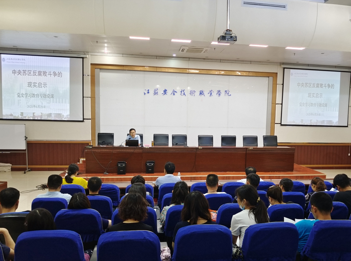 6月25日下午,学院纪委书记成伯君为基础课教学部党总支及机关第二党支部全体党员讲授党史专题党课。