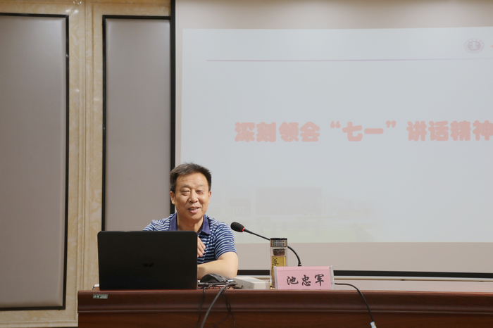 7月16日,我院举办学习贯彻习近平总书记“七一”重要讲话精神专题读书班,邀请中国矿业大学马克思主义学院院长、博士生导师、江苏省委宣传部中国特色社会主义理论宣讲团成员池忠军教授做专题辅导讲座。会议由党委委员、宣传部部长王体民主持,学院党政领导、中层以上干部、思政课教师、辅导员代表等参加学习。