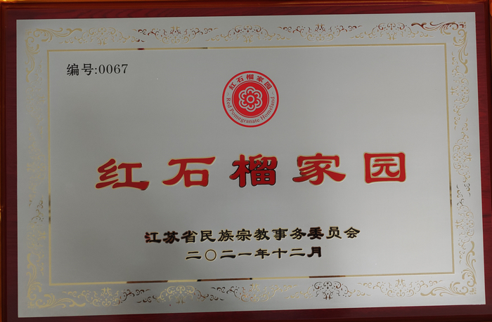 近日,江苏省民族宗教事务委员会公布全省第二批“红石榴家园”创建活动获评名单,我院获评江苏省第二批“红石榴家园”单位。