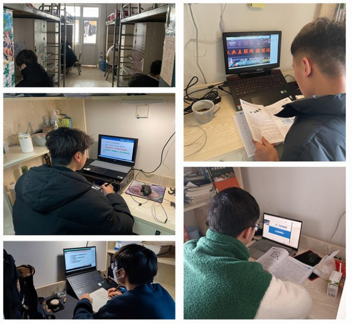根据学院统一部署,2022年春季学期开学安排为期两周的在线教学,教务处、二级院部积极谋划,充分做好线上教学准备。开学第一周学院227个班级、363位任课教师、423门课程在线教学有序实施。各二级学院领导走进宿舍,查看学生的学习情况,了解学生们线上学习中遇到的困难和问题并及时给予指导解决。学生们按时上下课,认真聆听老师的讲解,积极参与互动,总体状况良好。