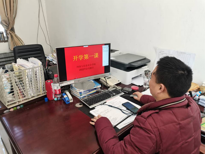 网络与信息安全学院党总支副书记付园上了就网信学院开学及疫情防控工作进行再部署、再落实。针对开学的线上教学,转专业,防诈骗等方面的工作进行提醒,确保校园教学秩序正常稳定运行。