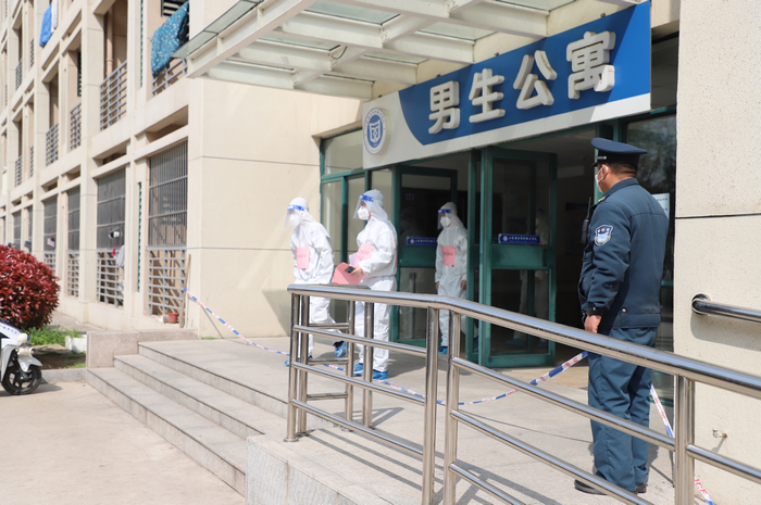 为严格贯彻落实上级和徐州市关于校园新冠肺炎疫情防控工作要求,全口径检验学院各相关部门应急响应能力,4月4日上午,我院在云龙校区开展突发新冠肺炎疫情防控应急演练。学院疫情防控工作领导小组成员参加演练。市教育局副局长徐志及联系学院的“五大员”专班市教育局综合保障中心宋浩宇主任、云龙区市场监管局第三分局刘洪果主任、市公安局云龙分局店子派出所陈荣海警官一行到现场进行指导。党政办公室、学工处、团委、安保处、后勤服务中心相关人员共同参加并观摩了演练。